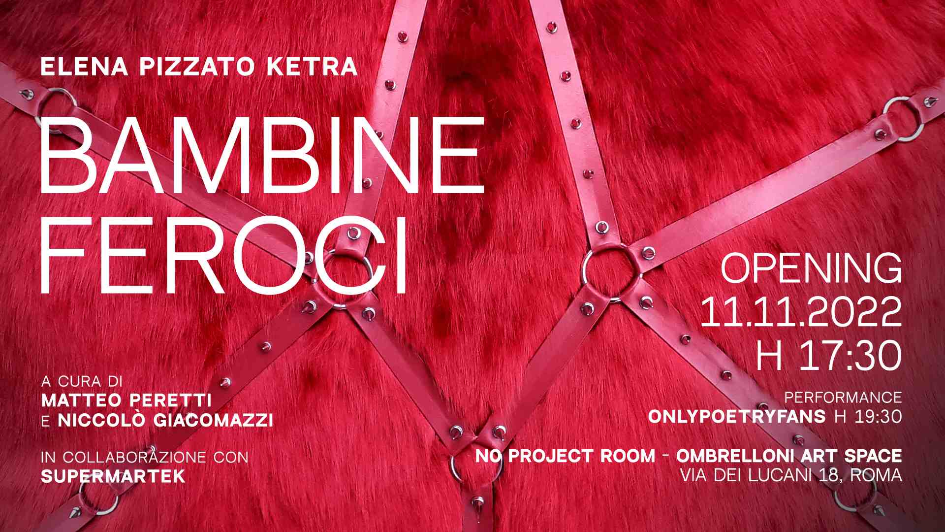La N0 Project Room, in collaborazione con Supermarket, inaugura venerdì 11 novembre 2022 la mostra personale Bambine feroci di Elena Pizzato Ketra a cura di Matteo Peretti e Niccolò Giacomazzi.