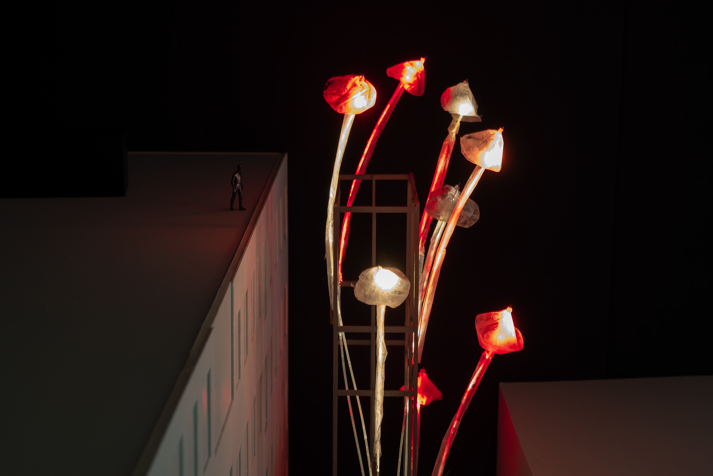 All’interno di BASE troveremo TALAMO, una scultura performativa – sospesa e abitabile – dei Lemonot, che dialogherà dapprima con i performers arisandmartha e poi coinvolgendo il pubblico a coreografie e configurazioni fantastiche, in cui si lima il confine tra materia e corpo umano. Nel cortile, invece, sarà presente FLOWAIR, la grande installazione site specific firmata dal team di Ingo Maurer.