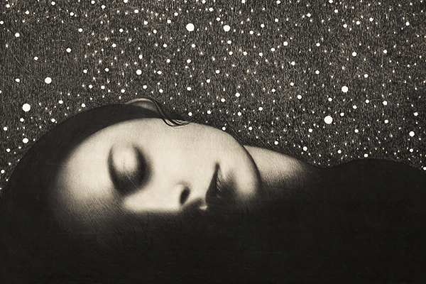 - Omar Galliani, Nel sonno II, Matita su tavola, 200×200 cm, 2025