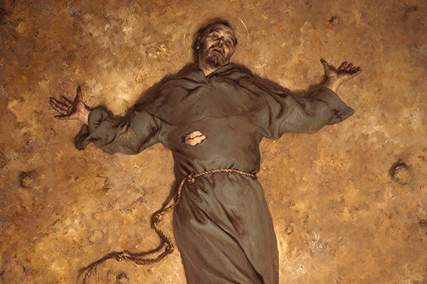 - Giovanni Gasparro, Impressione delle Sacre Stimmate sul corpo di san Francesco d’Assisi, Olio su tela, 200×165 cm, 2023