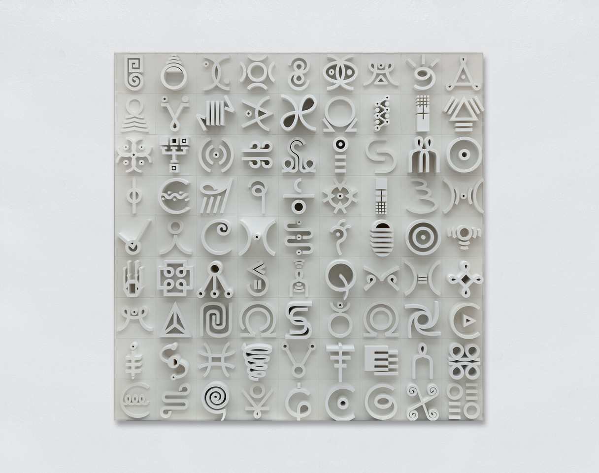 Mazzoleni presenta a Torino la mostra dedicata alle ricerche tra forma e linguaggio di tre artisti che, percorrendo strade diverse, hanno esplorato il ricorso ad elementi segnici in grado di evocare – o condensare – in oggetti tangibili significati e riferimenti simbolici rilevanti.