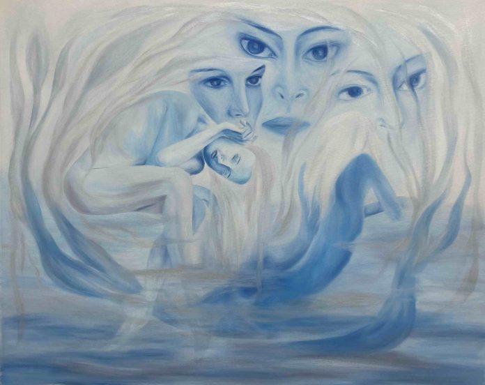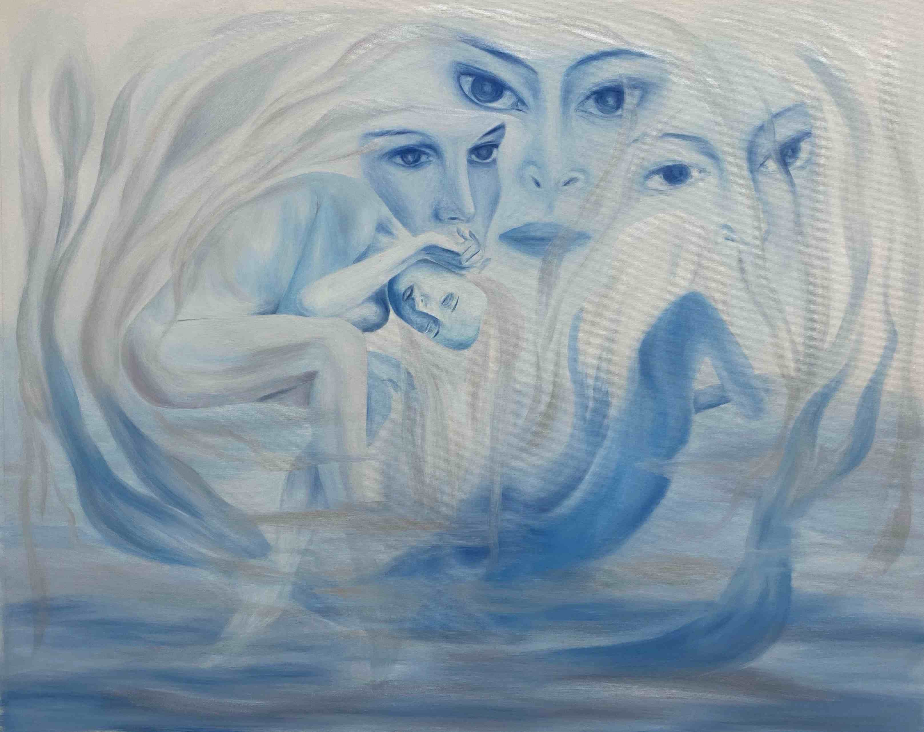Da sempre interessata a miti e leggende folkloristiche, Amalia Vekri sceglie di dedicare il suo progetto espositivo alla ninfa Anguana, protagonista di un ciclo pittorico direttamente ispirato all’influenza dei tre grandi laghi che circondano Cascina I.D.E.A..
