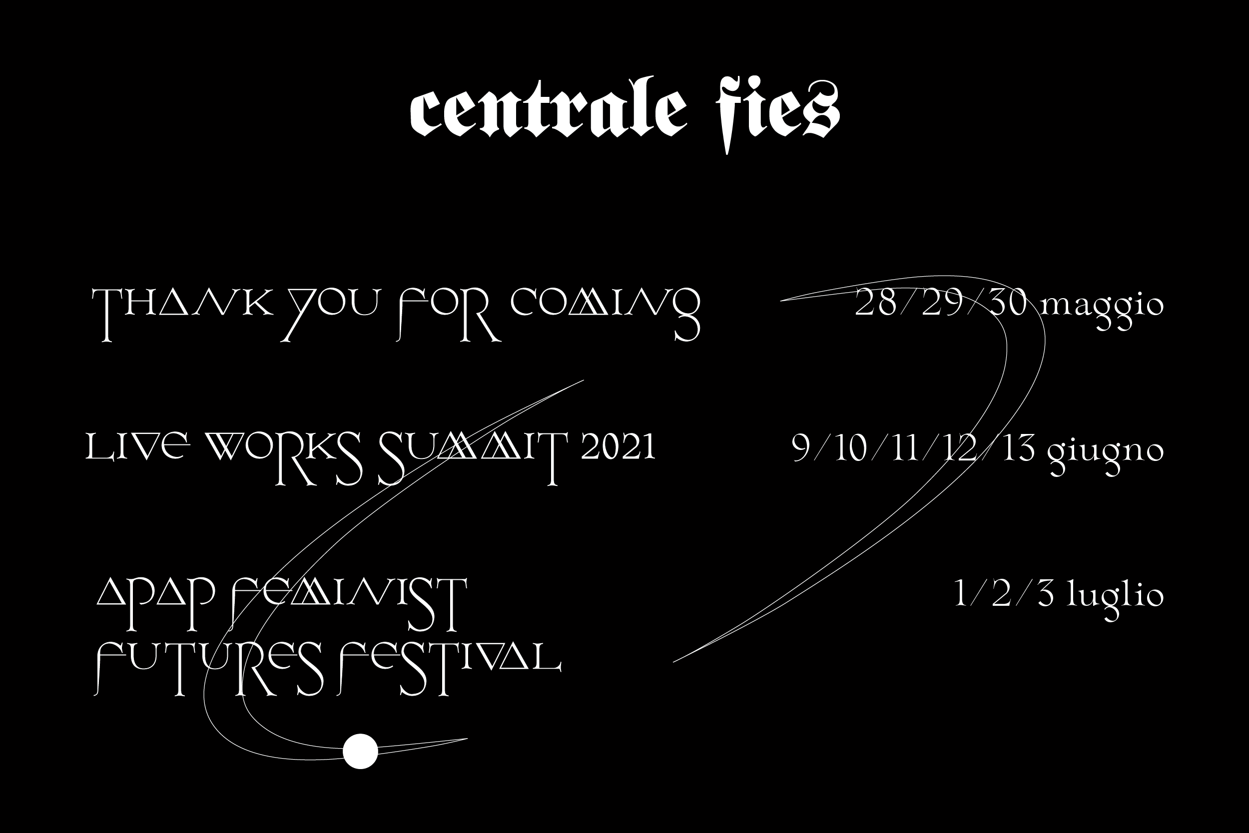 Per tutto il 2021 a Centrale Fies sarà possibile vedere pubblicamente gli esiti della sperimentazione artistica. A maggio (28-29-30 maggio) Centrale Fies si apre con Thank you for coming: la fine di una lunga residenza artistica di Marco D’Agostin con un dolce rituale di ritorno alle pratiche “live” per attutire le paure e le fatiche di quest’anno fuori dalle scene; a giugno sarà la volta del Live Works SUMMIT (9-13 giugno) con artiste/i internazionali, la Free School of performance, mostre e visioni; a luglio (1-2-3 luglio) Centrale Fies ospita APAP Feminist Futures Festival il kick off meeting di APAP, la rete europea dedicata alle Performing Art con il nuovo progetto Feminist Futures Festival, che include 20 artiste/i e 11 istituzioni tra festival, teatri nazionali, centri di produzione e di residenza di cui Centrale Fies fa parte.