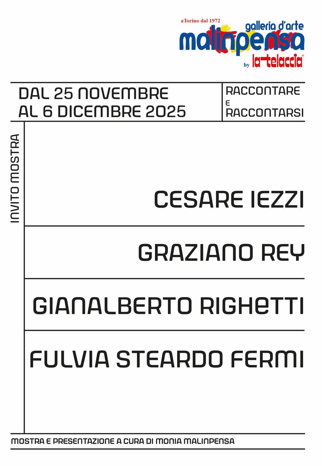 Quattro artisti in mostra: la fotografia di Gianalberto Righetti accarezza alberi che parlano piano. La pittura di Fulvia Steardo Fermi vibra di foglia oro, una musica di colori che respira. La scultura di Cesare Iezzi nasce dal gesso e dal legno, illumina il gesto con una luce leggere. La tecnica pittorica di Graziano Rey è un passo nella stessa danza, armonica e silenziosa. E’ una mostra dove le cromie si intrecciano come radici in ascolto.Ogni mano interpreta il mondo con grazia diversa. Le opere vivono in simbiosi per un unico respiro che si fa arte.
