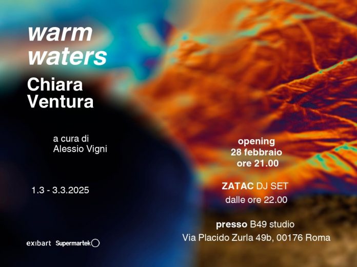 exibart e Supermartek presentano la mostra personale di Chiara Ventura, warm waters, a cura di Alessio Vigni. L’opening si terrà il 28 febbraio alle ore 21:00 e sarà possibile visitare la mostra fino al 3 marzo. Il progetto sarà concentrato tutto in un unico weekend, con l’intento di creare un evento-mostra partecipativo, aperto al pubblico, provando a ribaltare i processi elitari vicini al mondo dell’arte contemporanea.