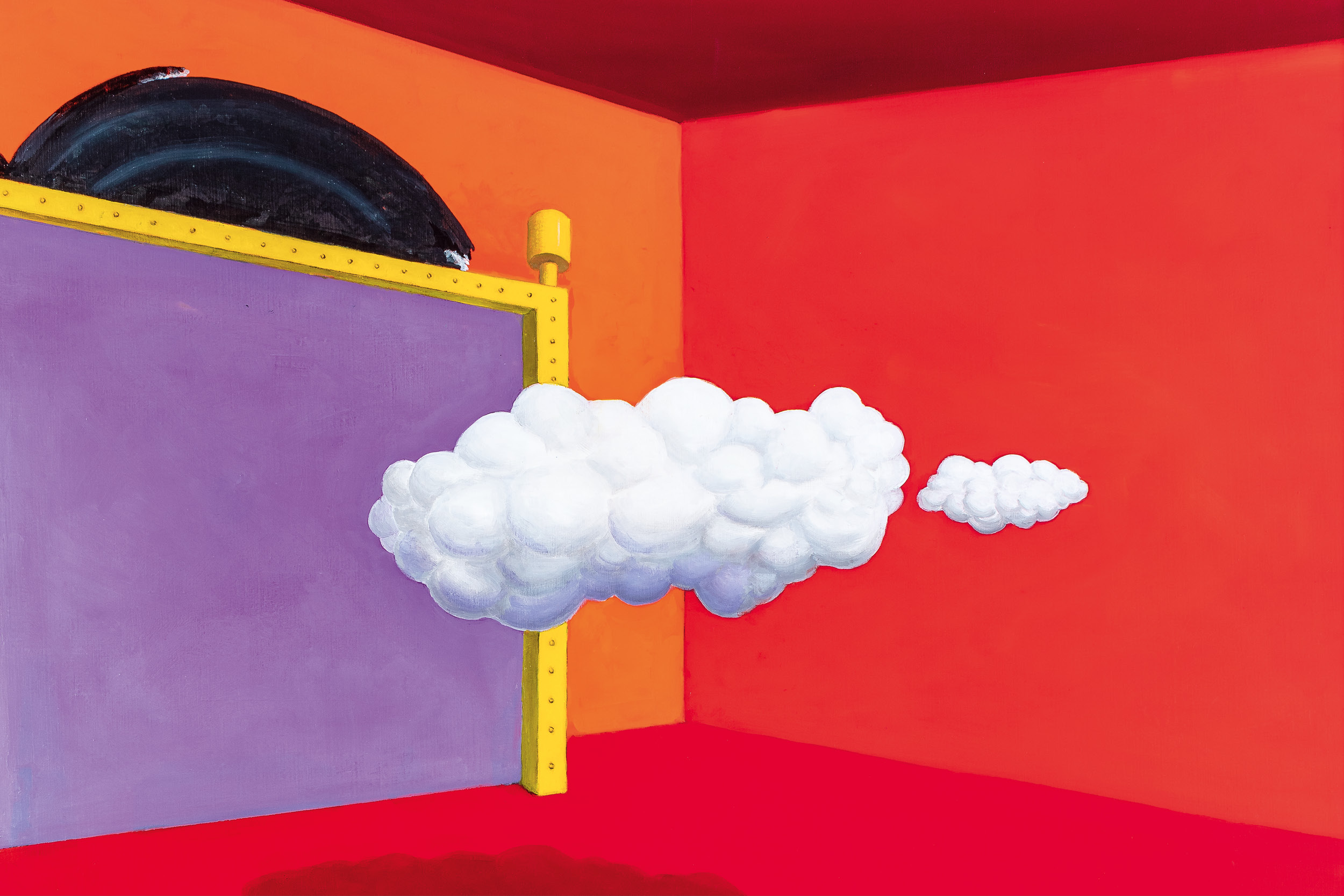 - Luigi Serafini, Interno rosso con nuvole e mosca, olio su tela, 2020, Fondazione Franco Maria Ricci, Labirinto della Masone (Foto Mauro Davoli)