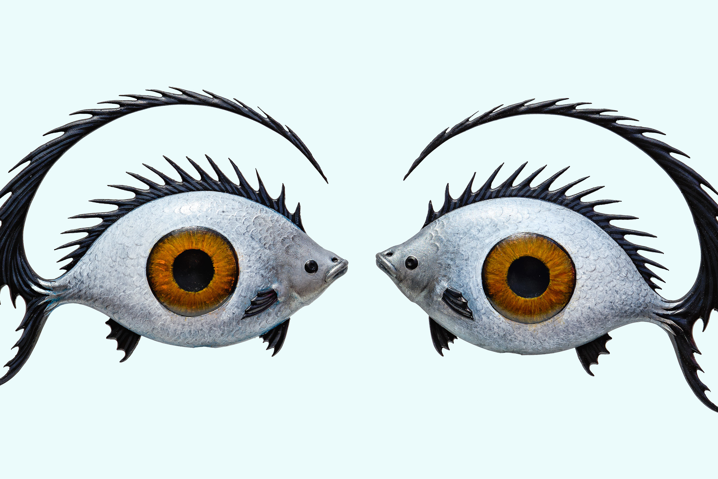 - Luigi Serafini, Due Pesci-occhio, resina e colori acrilici, 2024, Collezione dell’artista (Foto MART)