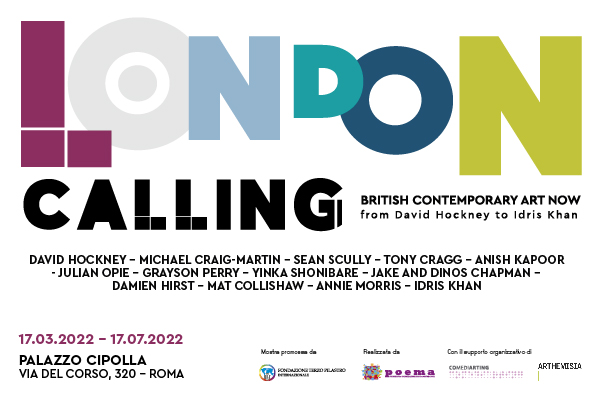 Dal 17 marzo al 17 luglio 2022, le sale di Palazzo Cipolla a Roma ospitano una delle più particolari mostre di arte contemporanea mai realizzate in Italia: “London Calling: British Contemporary Art Now. From David Hockney to Idris Khan”: una mostra che attraverso oltre 30 opere riunisce il lavoro di 13 grandi artisti britannici di diverse generazioni, per la cui carriera artistica la città di Londra ha svolto un ruolo molto importante.