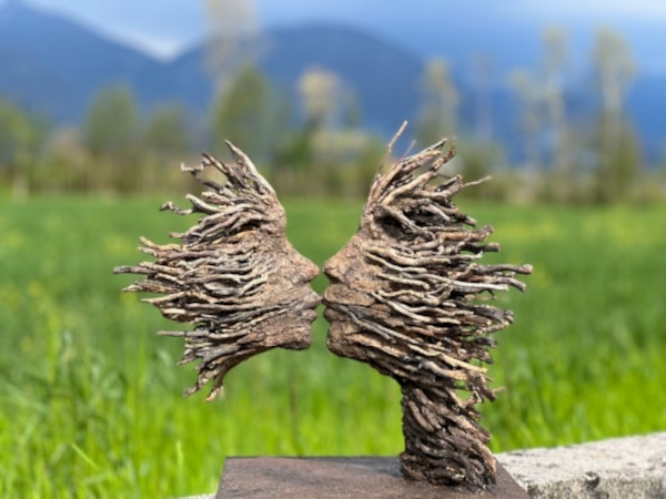 - Alessandra Aita, Il bacio, 2024, ferro, radici, corteccia, resina