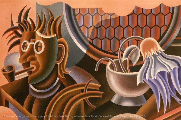 - Fortunato Depero, (L’uomo con la pipa) Fumatore e fiore, 1946 – particolare, Mart, Fondo Depero © Fortunato Depero, by SIAE 2026