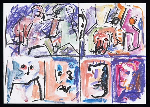 Colori acrilici vinilici, carboncino, carta e sabbia su tela
