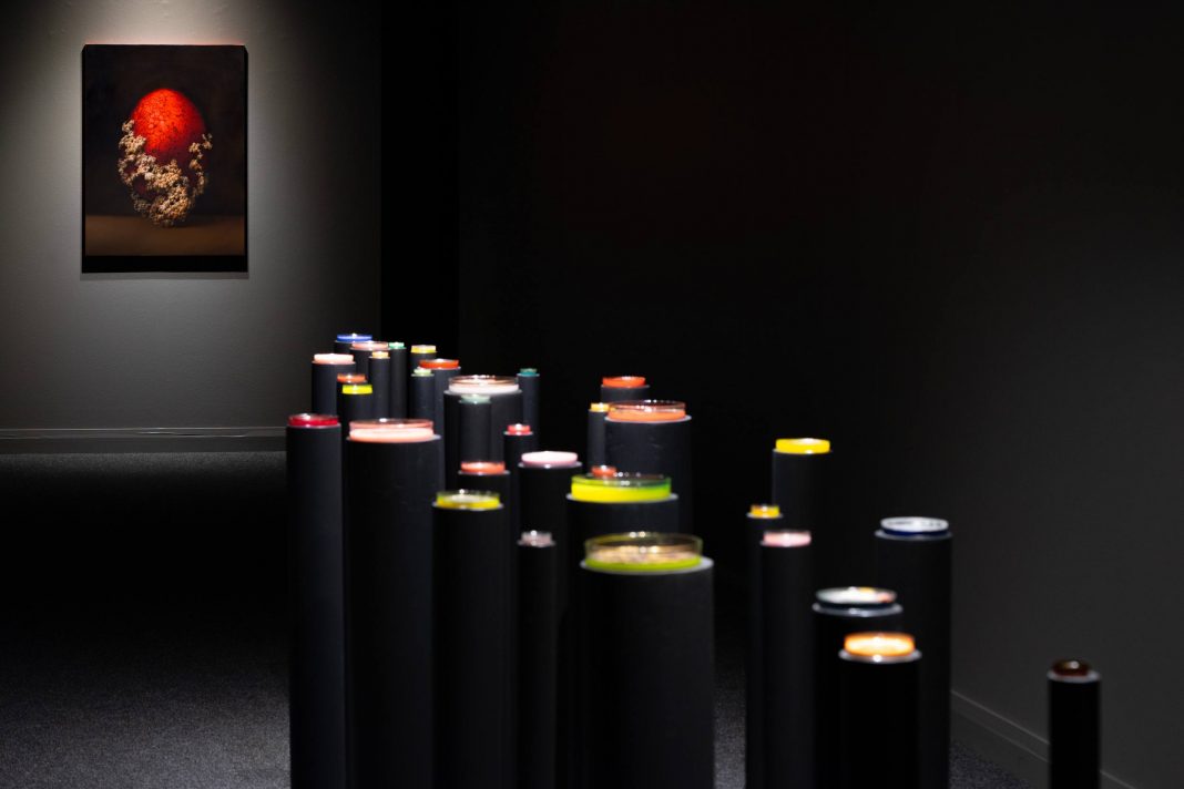 Al centro della sala espositiva, è posizionato Arcipelago, un insieme di 34 micro opere realizzate su piastre di Petri, poggiate su altrettanti supporti a colonna, che ricorda un vivaio di ninfe generate su piastre da coltura biologica. Alcune di queste sono vere e proprio opere pittoriche di piccolissimo formato realizzate con le stesse modalità di quelle su tela, altre possono essere intese come delle micro narrazioni della fase iniziale del processo pittorico.