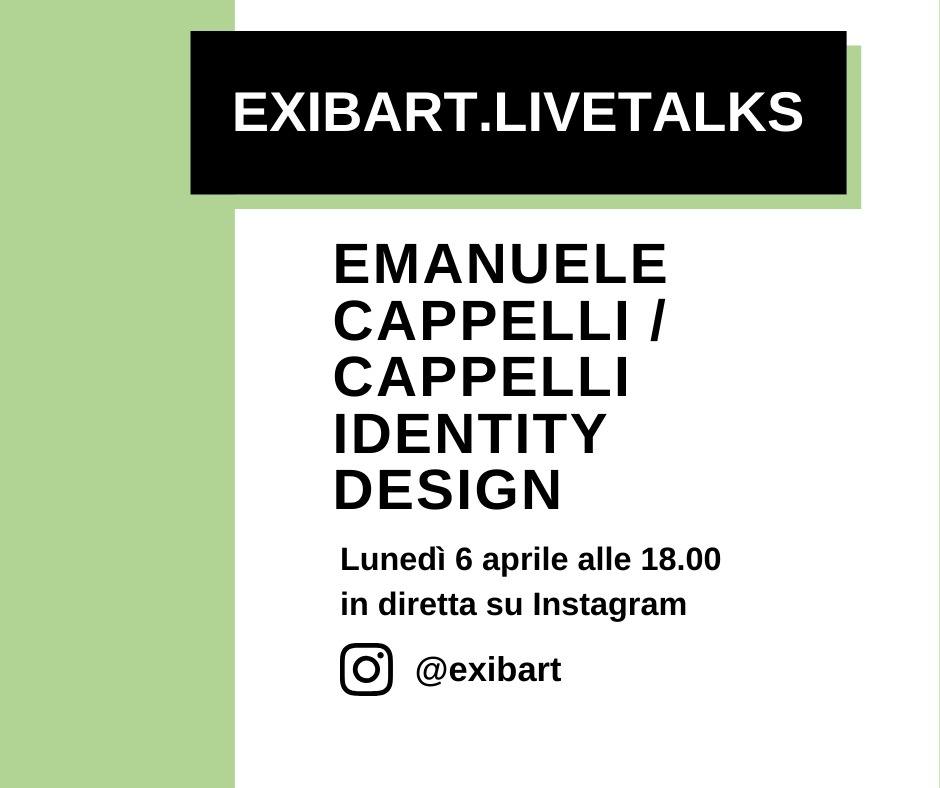 EXIBART.LIVETALKS. Lunedì 6 aprile: Emanuele Cappelli / Cappelli Identity Design