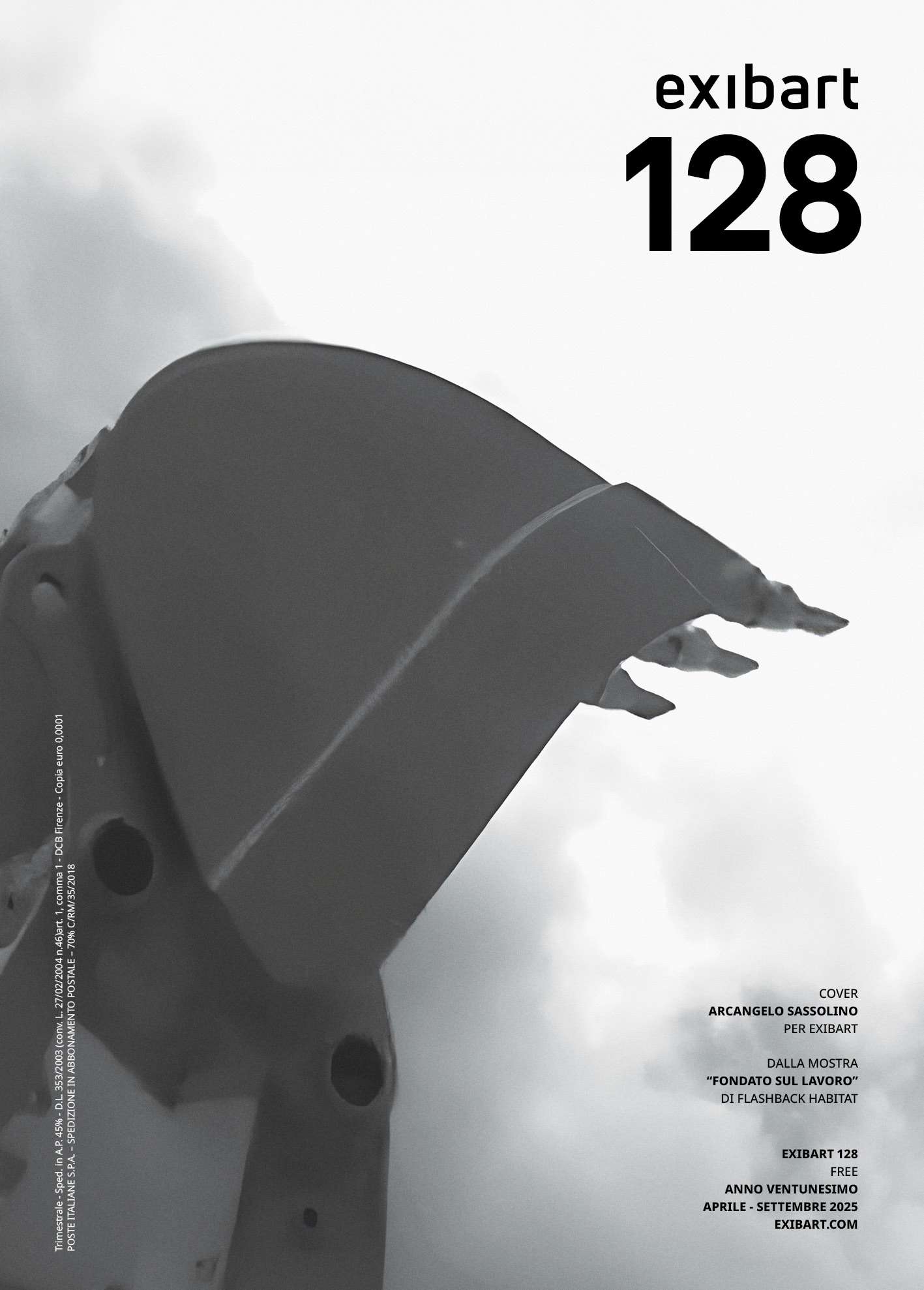 Un presente da cui ripartire per costruire un futuro possibile, come sembra lasciar intendere l’immagine che abbiamo scelto per questa copertina enigmatica e incisiva, uno still da Elisa, opera di Arcangelo Sassolino. «Elisa. Nome proprio di persona, femminile. Oppure, titolo scelto da Arcangelo Sassolino per la simbolica scultura a forma di escavatrice, bianca e senza testa, che si muove su se stessa con movimenti lenti e apparentemente incontrollati. Elisa – l’opera video – Sassolino l’ha realizzata nel 2012, e nel 2022, a trent’anni dalla strage di Capaci e di Via D’Amelio l’ha allestita in Piazza Villena ai Quattro Canti di Palermo», racconta Elsa Barbieri nell’articolo che troverete a pagina 65. Oggi, a distanza di qualche anno, nella sua documentazione video, torna a vivere nella mostra Fondato sul Lavoro, con la curatela di Ginevra Pucci e la direzione artistica di Alessandro Bulgini, che Flashback Habitat inaugura il 2 aprile 2025 nel suo spazio torinese in Corso Giovanni Lanza».