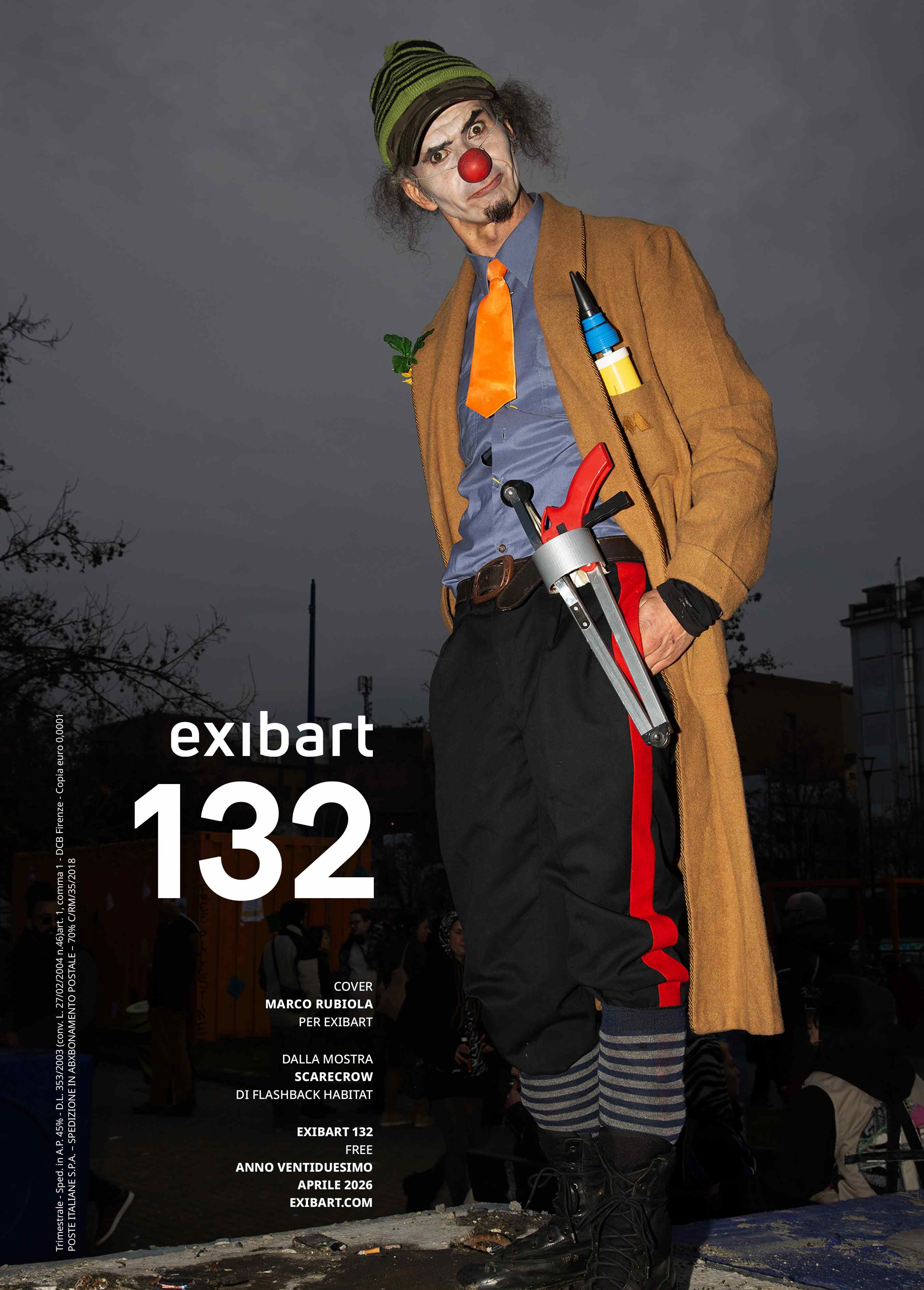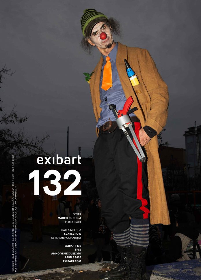 • In copertina Marco Rubiola, Pagliacci – Generale, 2026. 1 di 5 stampe fotografiche in carta lucida, 70×100 cm cad. dalla mostra SCARECROW artisti a presidio della vita a Flashback Habitat, Torino