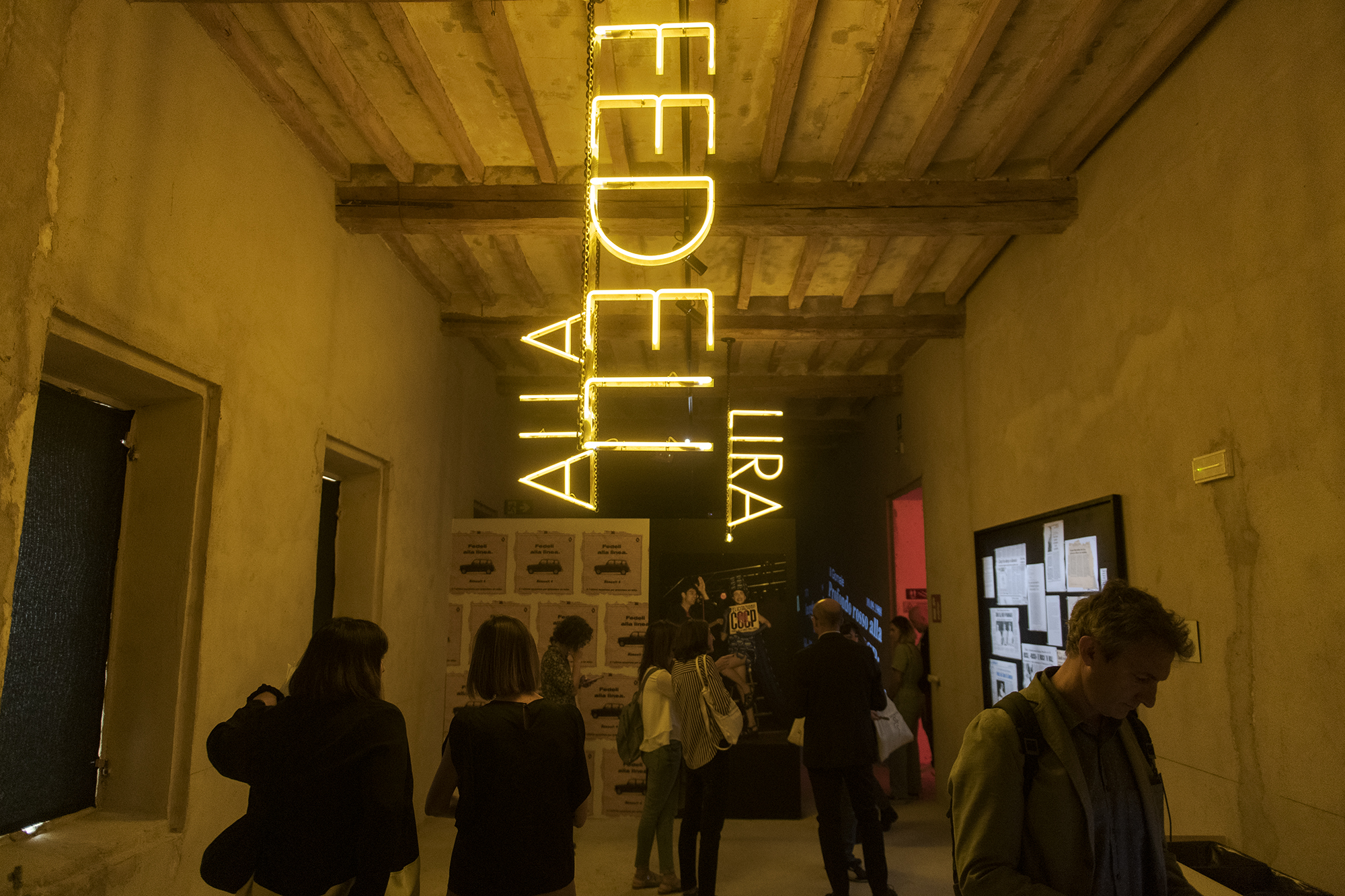 L’esposizione comprende installazioni sonore, video, parole e immagini in grado di portare il visitatore all’interno del caos dell’essere CCCP, sottolineando la forza dirompente dei testi e l’aura quasi mitologica che circonda il gruppo.