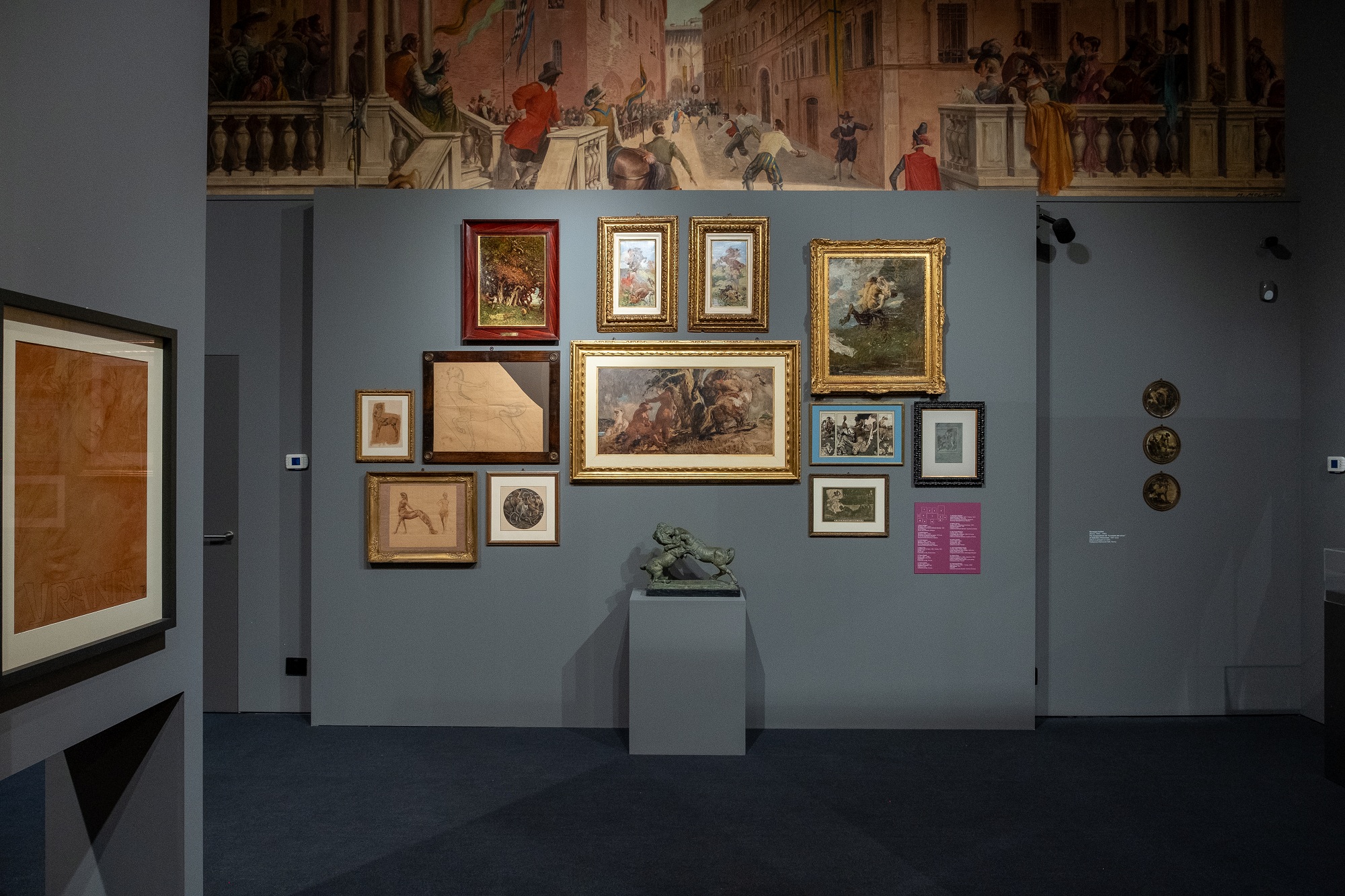 Il fulcro della mostra è Centauro che uccide un cervo (1918 ca.), ispirato a una lirica dannunziana: l’ibrido metà uomo metà cavallo incarna la dualità umana, in bilico tra istinto e ragione, pulsioni individuali e tensioni collettive, natura e cultura.