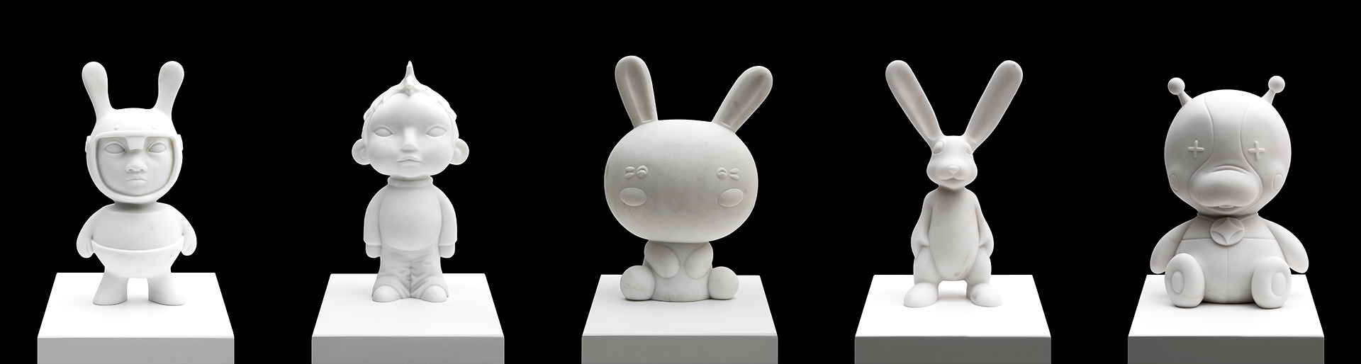 I “Toys” sono in marmo Statuario Michelangelo, alti 30 centimetri per 4 Kg di peso.