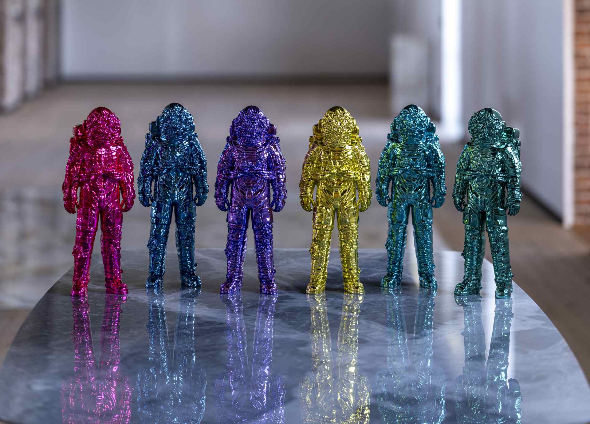 - Filippo Tincolini, Spaceman Shiny, different colors, chromed fiberglass, 2024 Ph. Laura Veschi