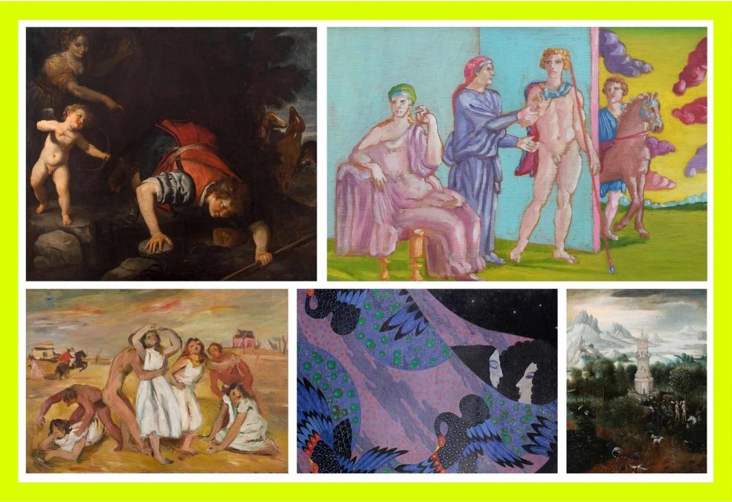 Nell’immagine, in alto a sinistra: Herri Met De Bles II, Il paradiso terrestre, 1540 ca., olio su tavola, cm 25 x 20, courtesy of: Caretto&Occhinegro (Torino). Segue: Enrico Paulucci, Ratto delle sabine, 1934, olio su tela, cm 65 x 100, courtesy of: Galleria d’Arte Roccatre (Torino). Segue: Giovanni Andrea De Ferrari, Narciso alla fonte, la ninfa Eco e Amore prima metà del XVII sec., olio su tela, cm 148 x 180, courtesy of: Arcuti Fine Art (Roma; Torino).