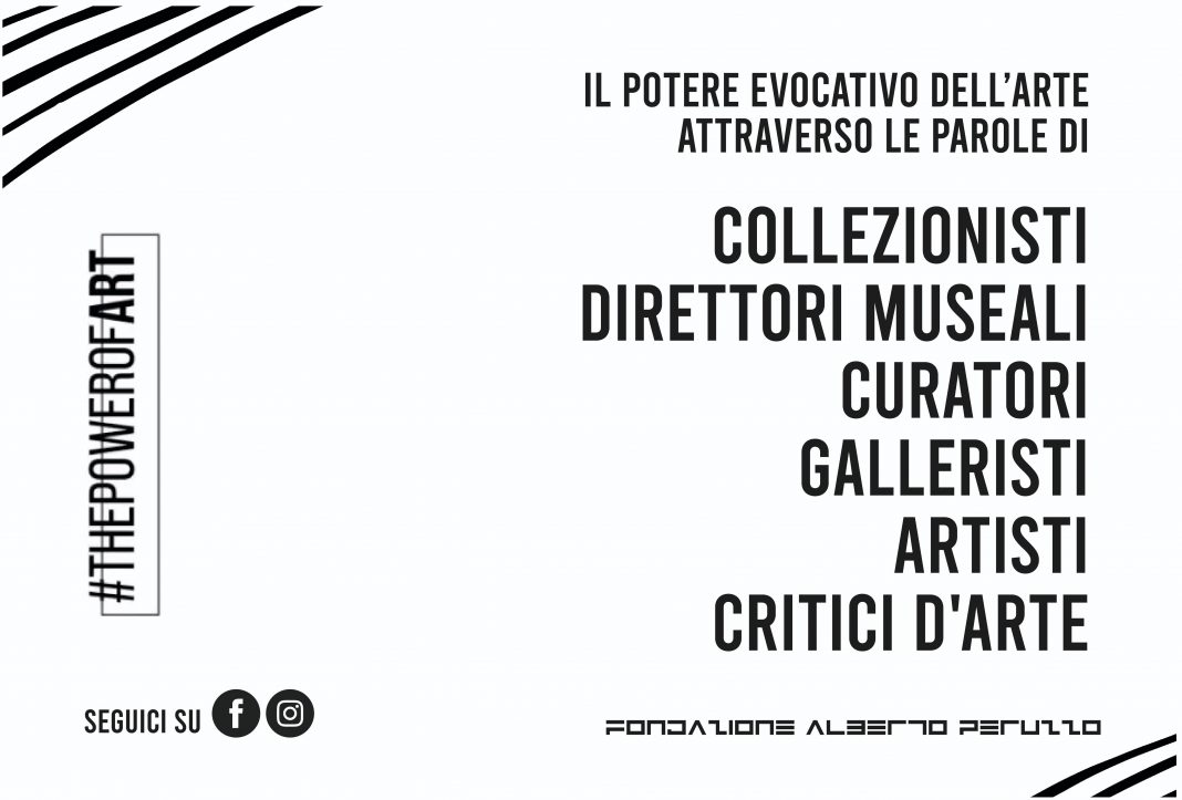 In questi giorni delicati la Fondazione Alberto Peruzzo ha deciso di chiedere ad un po’ di persone, addetti ai lavori e non, direttori di musei, collezionisti, artisti e semplici appassionati, di raccontare in poche righe – o tramite un breve video – una loro esperienza in relazione all’arte. Si discute spesso di quale sia il ruolo dell’arte nella società contemporanea, ed in questa occasione la fondazione ha voluto semplicemente sottolineare il ‘potere dell’arte’, ossia come l’arte abbia segnato la nostra vita in certi momenti particolari, ad esempio chiedendo all’interlocutore di raccontare un’opera che gli è rimasta impressa o che addirittura gli ha cambiato la vita, o anche di parlare di un’opera che ci dice qualcosa in questi tempi complessi. Non tanto per sottolineare il potere taumaturgico e salvifico dell’arte, ma per ricordare che l’arte è espressione della vita e di ciò che ci circonda, nel bene e nel male, può essere consolatoria o meno, e può essere anche stimolo al cambiamento.