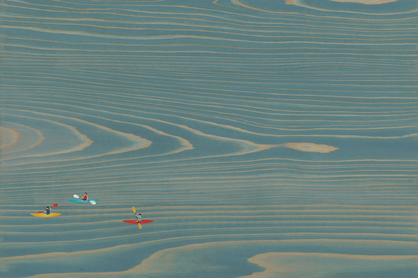 La sezione Motivi di Natura indaga simboli e codici stagionali attraverso fiori, uccelli, onde e vedute del Monte Fuji, dalle stampe policrome Edo di Hokusai e Hiroshige ai volumi illustrati Meiji e ai katagami, fino ai poster del Novecento di Nagai Kazumasa e Tanaka Ikkō. Volti e Maschere esplora invece la rappresentazione del corpo, la teatralità e la performance, tracciando un filo tra il teatro kabuki e la comunicazione visiva del Novecento, fino al cinema di Ozu e Kurosawa e all’animazione di Miyazaki. In Calligrafia e Tipografia, il gesto calligrafico diventa struttura compositiva: caratteri cinesi, sillabari fonetici e lettere romane convivono in manifesti che giocano tra parola, immagine e spazio, mostrando l’eredità zen e la sua trasformazione pop. La sezione conclusiva, Giapponismo, evidenzia come il Giappone abbia saputo fondere tradizione e innovazione, influenzando moda, editoria, pubblicità e design a livello globale.