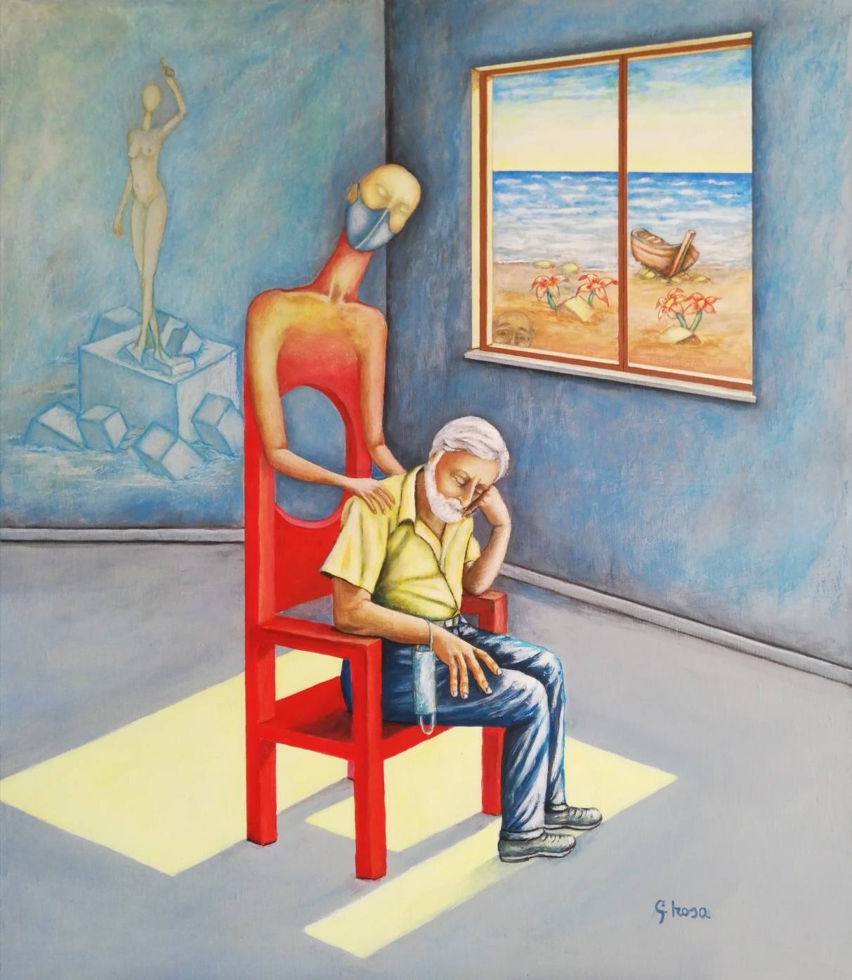Opera realizzata su tela con tecnica mista: colore acrilico e pastello ad olio cm 60×70