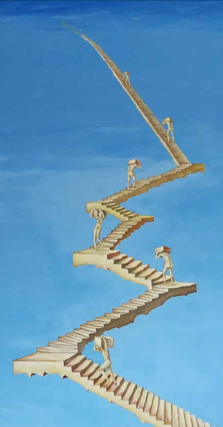 Una scala, visione surreale, sospesa nel vuoto indefinito,