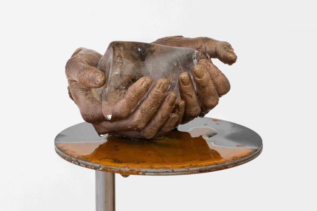 “Il lavoro di Rowan coinvolge una catena effimera di eventi che si dispiegano attraverso stati della materia: trasformazione, crescita, reazione, adattamento, evoluzione e deterioramento, e riflette su un’essenza del tempo in cui la relazione tra materiali diversi agisce o si sostiene a vicenda”. Come spiega l’artista, “mi interessa lavorare con un’ampia gamma di materiali e formare intricate connessioni e assemblaggi con questi elementi attraverso un processo fluido”. “Spesso l’acqua gioca un ruolo in relazione agli stati materiali di questi altri componenti”, continua l’artista. Rowan trova relazioni profonde tra elementi spesso considerati inanimati, ma che in realtà operano solo su scale temporali diverse”.