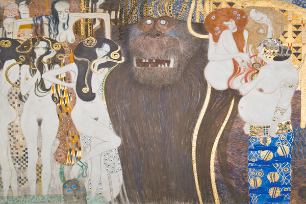 - Gustav Klimt, Beethoven Frieze The hostile forces – panel 1, front wall, 1901 Belvedere