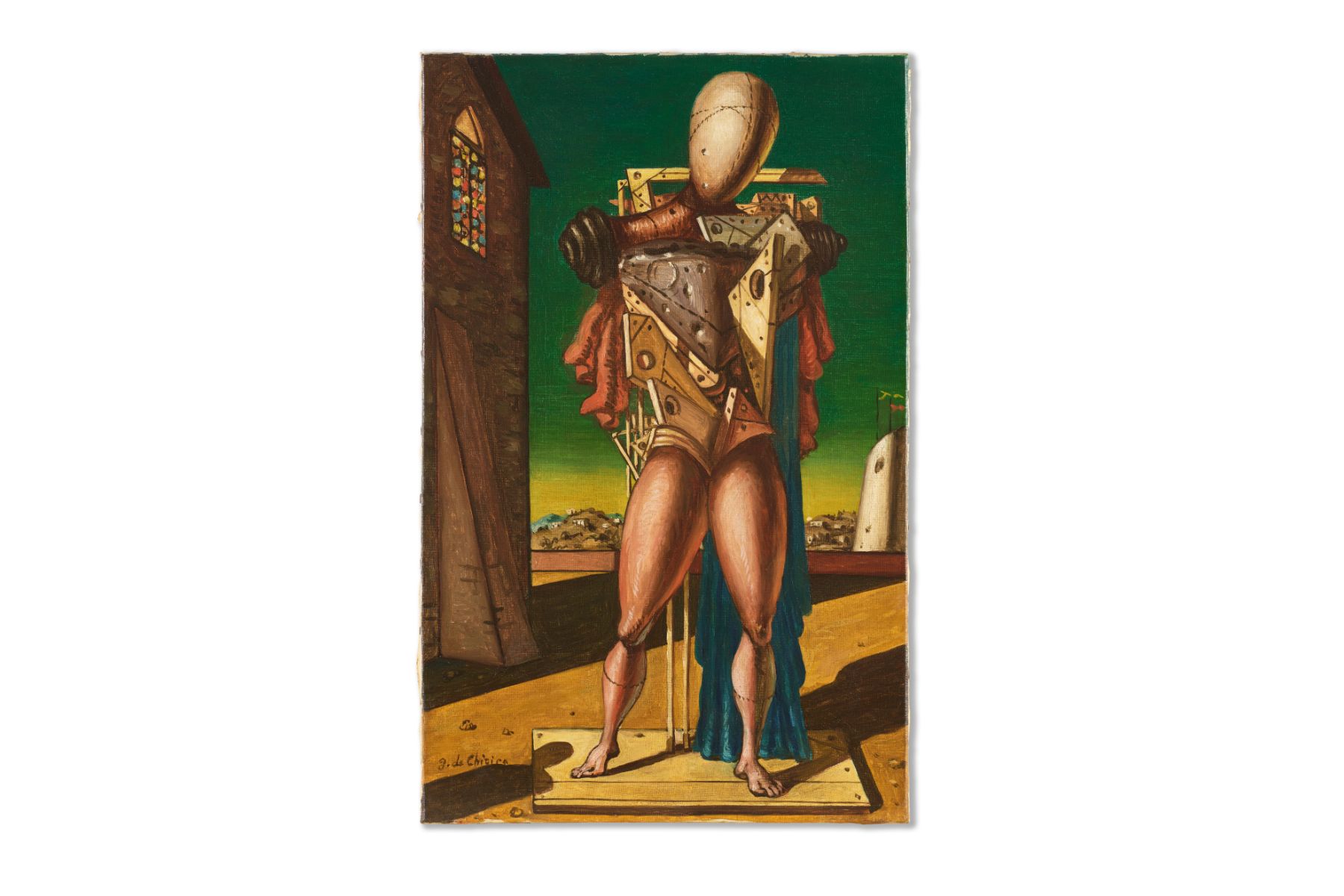 Giorgio de Chirico “Il trovatore” 1945, olio su tela, cm 55×35. Firmato in basso a sinistra. Firmato e titolato al retro.