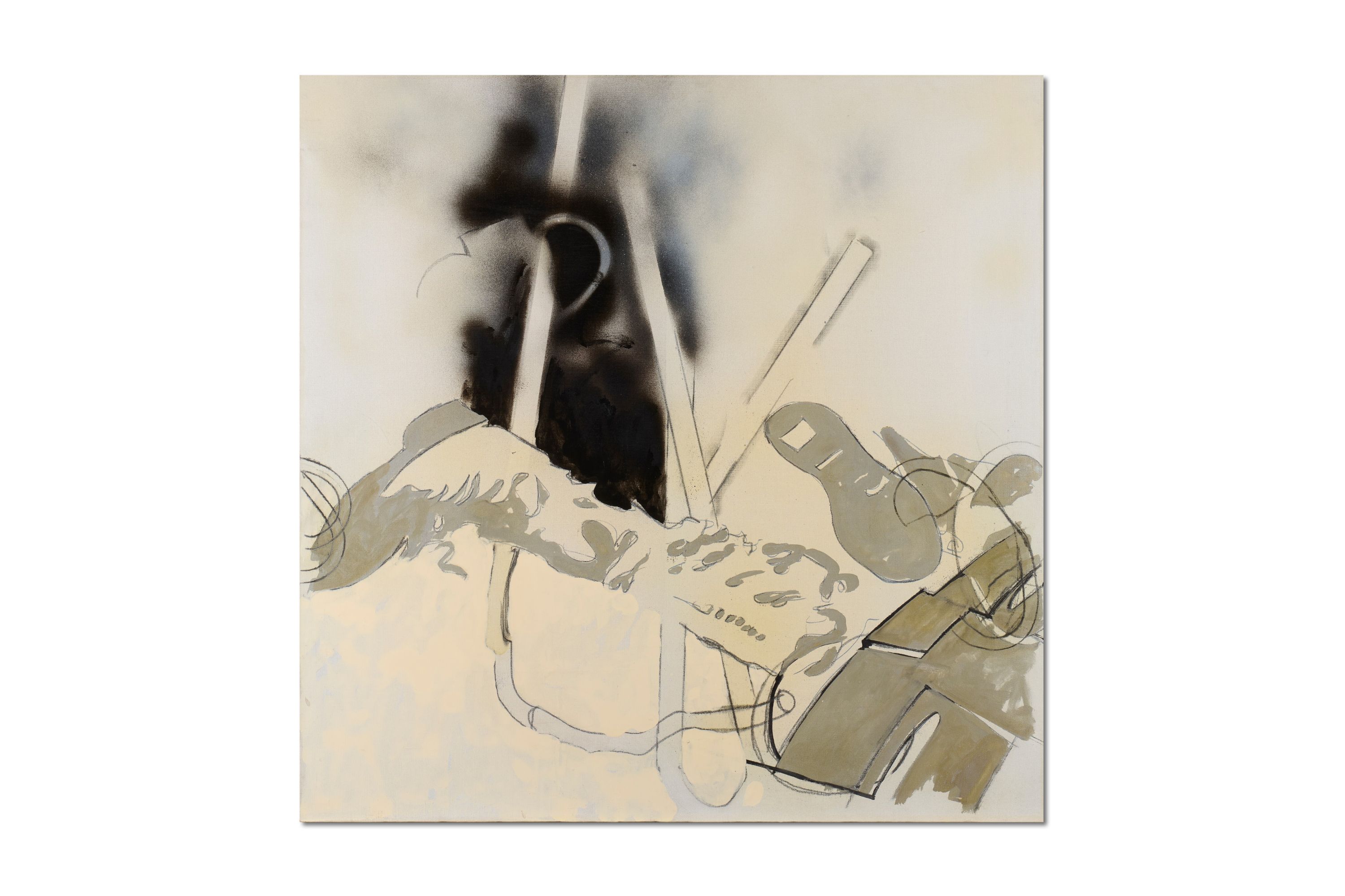 Stima € 50.000 – 70.000 - Mario Schifano, “Spazio” 1965, smalto, spray e grafite su tela, cm 80×80.