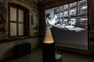 “Quando mi è stato chiesto di iniziare questo viaggio – racconta la curatrice della mostra Beatrice Mosca – ero di fronte a un mare d’inverno. Insieme al presidente Stefano Zecchi scrivemmo una sceneggiatura che è diventata la trama del cortometraggio. Dare vita corporea a un pensiero astratto è stata un’esperienza emozionante. Non una mostra multimediale, intesa come diluvio di immagini suggestive sì ma artefatte, bensì un tutt’uno di arti e pensiero”.