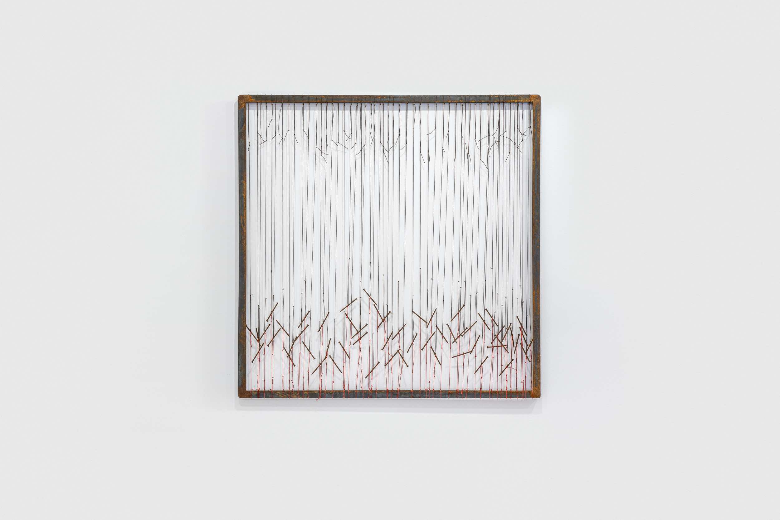 - Verònica Vàzquez, De la serie memoria abandonadas, 2017, ferro, chiodi e filo, 100×100 cm, ph Enrico Fiorese