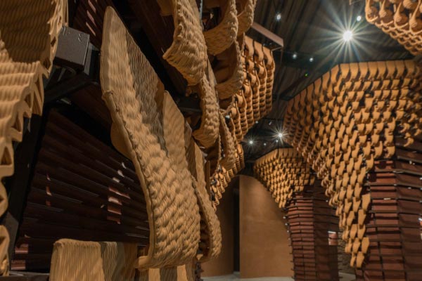 Uno spazio articolato in tre volumi principali che si apre con sei archi di metallo a otto facce, portali rivestiti con pannelli di legno e mattonelle tradizionali, stampate in argilla 3D, dall’andamento ondulatorio, come le dune del deserto: è il Padiglione dell’Arabia Saudita alla 18° edizione della Biennale Architettura di Venezia. Un progetto dal nome evocativo – IRTH إرث, che in arabo vuol dire eredità – ideato dall’architetto AlBara Saimaldahar a cura di Basma e Noura Bouzo che, rispondendo al tema di questa edizione – The Laboratory of the Future – esamina il rapporto simbiotico tra materiale e immateriale nell’architettura saudita, unione che condiziona la percezione di chi abita un luogo e il suo rapporto con lo spazio. Con IRTH إرث, ospitata fino al 26 novembre 2023 negli spazi delle Sale d’Armi dell’Arsenale di Venezia, il Padiglione raccoglie le prospettive interdisciplinari di architetti e progettisti sauditi, in una mostra che invita il pubblico a prendere parte a un’esplorazione che contribuirà alla definizione di un’eredità per le generazioni future, portando in primo piano quel concetto fondamentale di pratica collaborativa senza il quale non è possibile immaginarla.