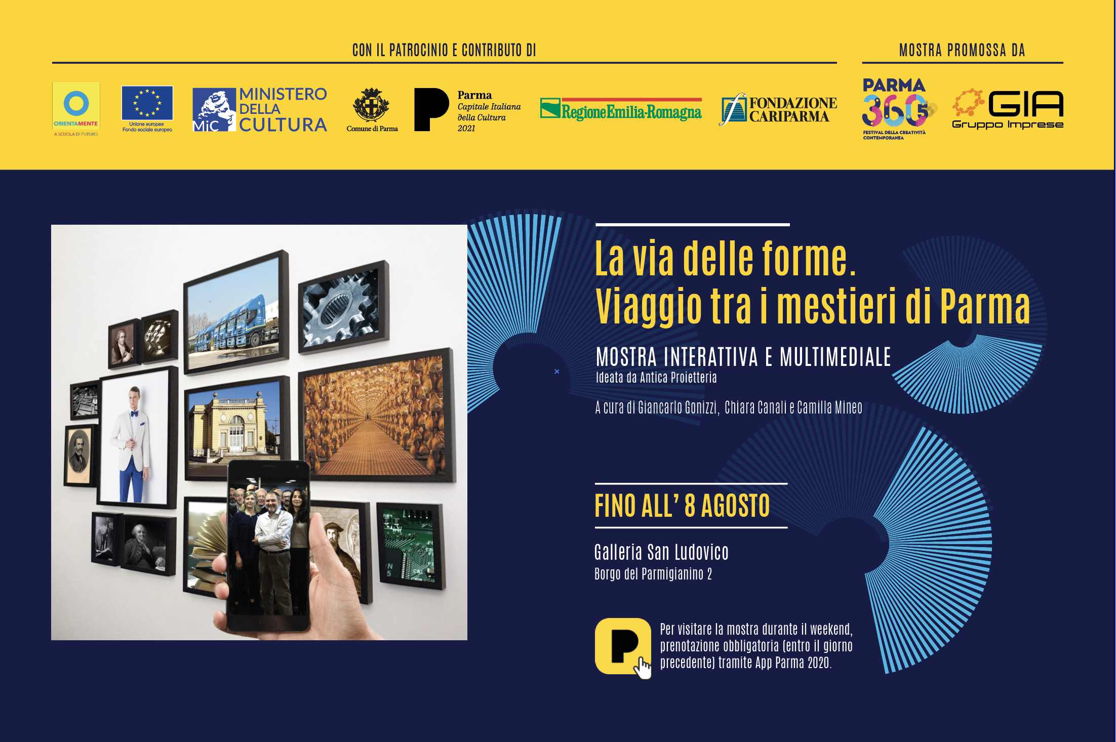 Nel programma ufficiale di Parma Capitale della Cultura 2020+21 ha preso avvio il progetto multimediale e interattivo LA VIA DELLE FORME. Viaggio tra i mestieri di Parma, mostra curata da Giancarlo Gonizzi, Chiara Canali e Camilla Mineo, ideata da Antica Proietteria e promossa da Parma 360 Festival della creatività contemporanea in collaborazione con il Gruppo Imprese Artigiane.
