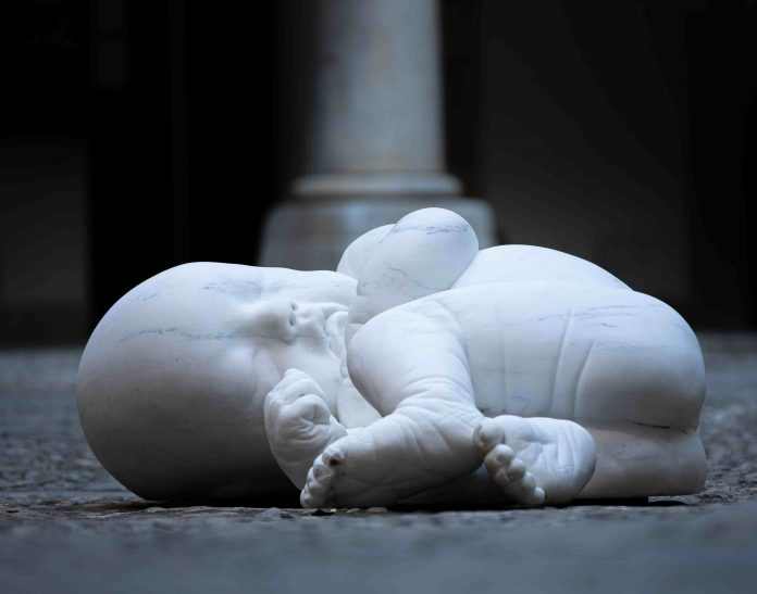 Un bambino di marmo bianco, rannicchiato in posizione fetale, è posizionato da oggi al centro del Cortile Maqueda del Palazzo Reale di Palermo, rivolto verso uno dei luoghi spirituali più importanti al mondo, la Cappella Palatina, simbolo della convivenza tra culture e religioni diverse. Si tratta della celebre opera “Look Down”, chiaro invito a “guardare in basso”, realizzata da Jago e voluta a Palermo dalla Fondazione Federico II. Il “feto” rappresenta lo sguardo dell’arte rivolto ai più fragili, in antitesi all’indifferenza. A Palermo è stato già ribattezzato “U’ Picciriddu”.