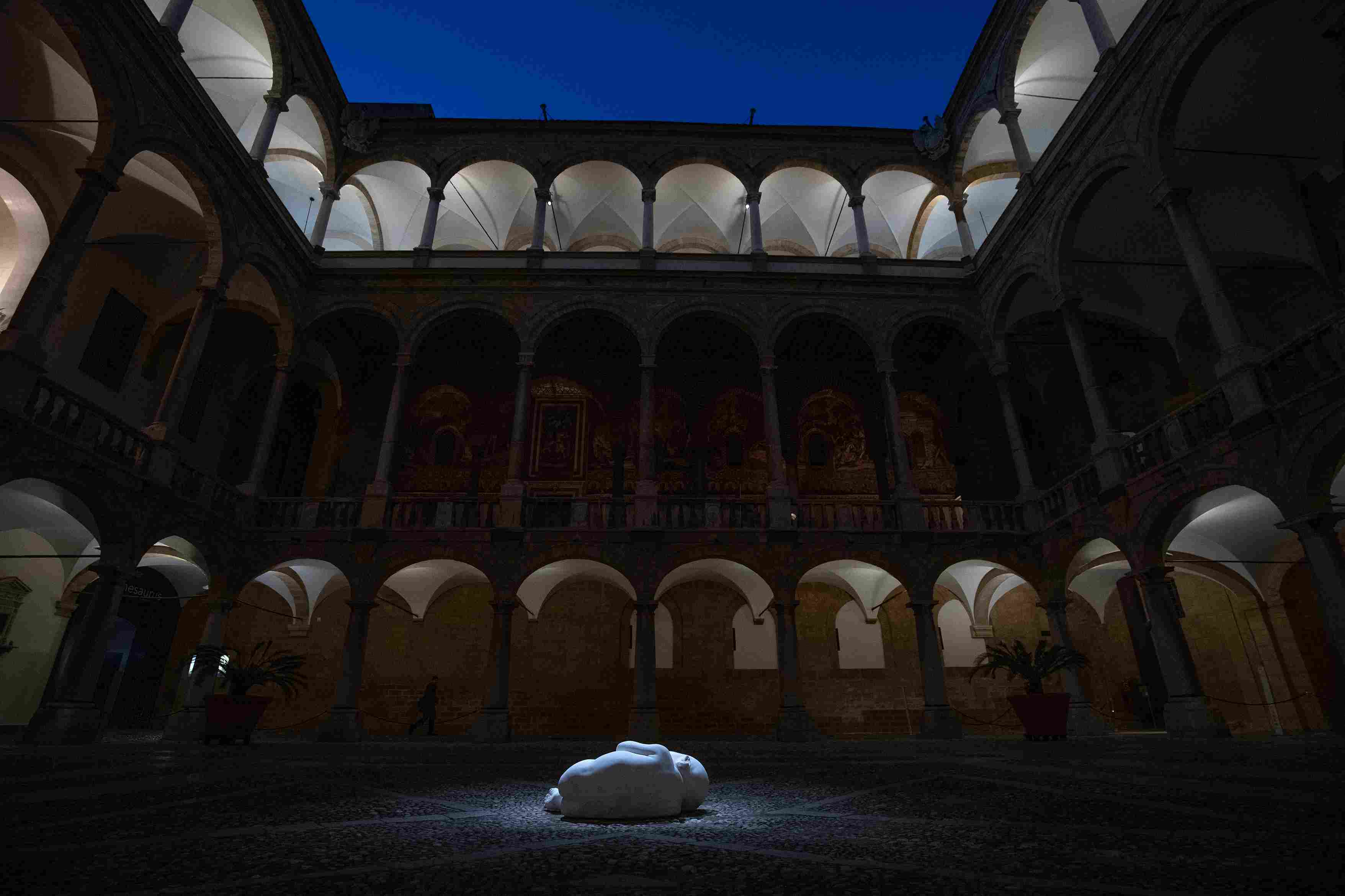 “L’opera può sottolineare le caratteristiche dello spazio che la circonda – ha detto Jago, visibilmente commosso all’anteprima – ma è sicuramente in dialogo con la storia e il racconto di un luogo straordinario come Palazzo Reale di Palermo”.