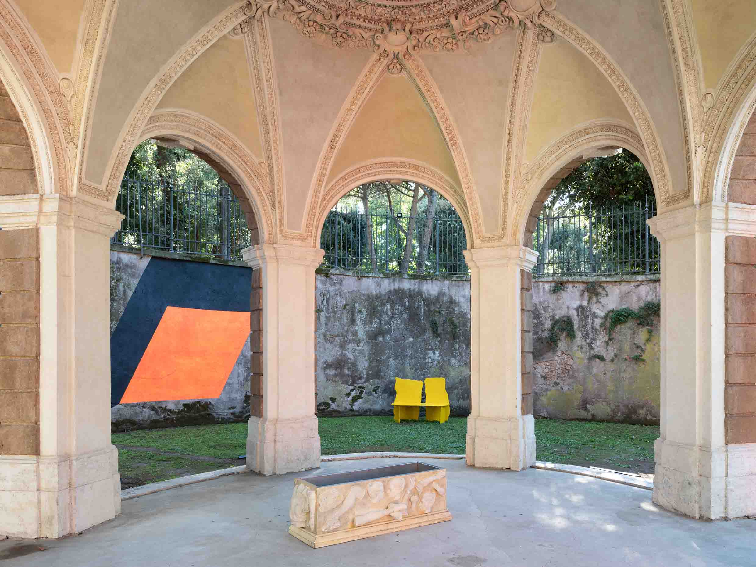 All’interno, Lili Reynaud-Dewar espone Sarcophagus (2025), un’opera site-specific composta da calchi del suo corpo. Tra memoria e vulnerabilità, la scultura dialoga con i bassorilievi antichi e l’architettura seicentesca della Loggia.