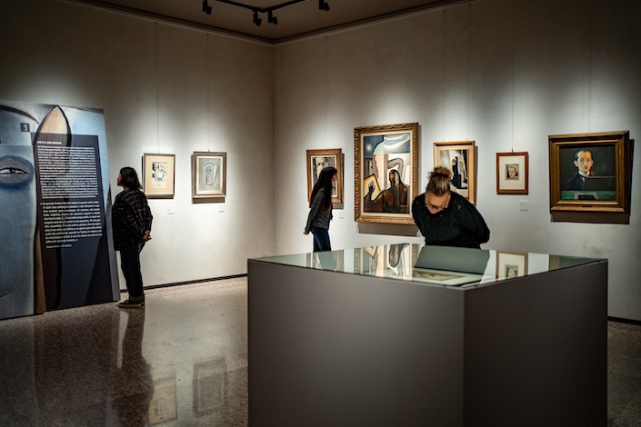 Un’ulteriore sezione della mostra è dedicata agli autoritratti, riuniti per la prima volta in così alto numero in un unico allestimento. Questi lavori, tra i più sentiti della produzione di Martini, offrono uno sguardo intimo e profondo sulla sua personalità, rivelando il conflitto tra l’io e il suo doppio, tema centrale nella poetica martiniana.