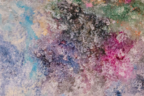 Questa densità determina una vera e propria rivoluzione che si realizza grazie all’immaginario della pittrice. Passo dopo passo, il floreale vira verso l’informale, le tracce di figurativo scolorano nell’astratto, in un afflato di spiritualità.