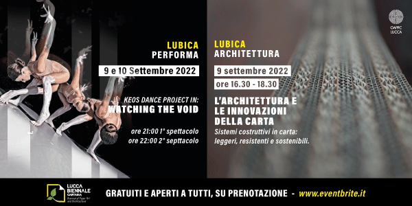 Moderato da Giulia Bertolucci, curatrice della sezione Architettura di Lubica, l’incontro, organizzato in collaborazione con l’Ordine degli Architetti PPC di Lucca, promosso dal Comune di Lucca e dalla Fondazione Cassa di Risparmio di Lucca, col patrocinio del Ministero della cultura e del Ministero della Transizione Ecologica col contributo di Ecoverde, Wepa, Fosber, presenta due studi che trattano l’uso della carta e cartone in ambito di architettura e design.
