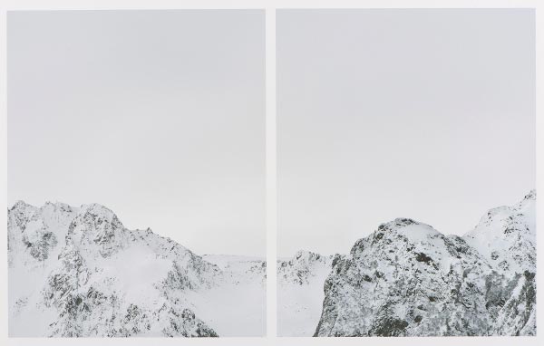 Axel Hütte (Essen, Germania, 1951), per certi versi, rappresenta l’evoluzione e la sintesi contemporanea di Sella e Adams. Quella di Hütte è una lettura architettonica della montagna, dei suoi volumi che si collocano nello spazio, sospesi fra terra e cielo, veri e propri monumenti naturali. Hütte offre invece delle visioni alle volte fin inquietanti, dove le vette sembrano fantasmi che aleggiano sul nostro tempo, sempre più instabile e incerto.