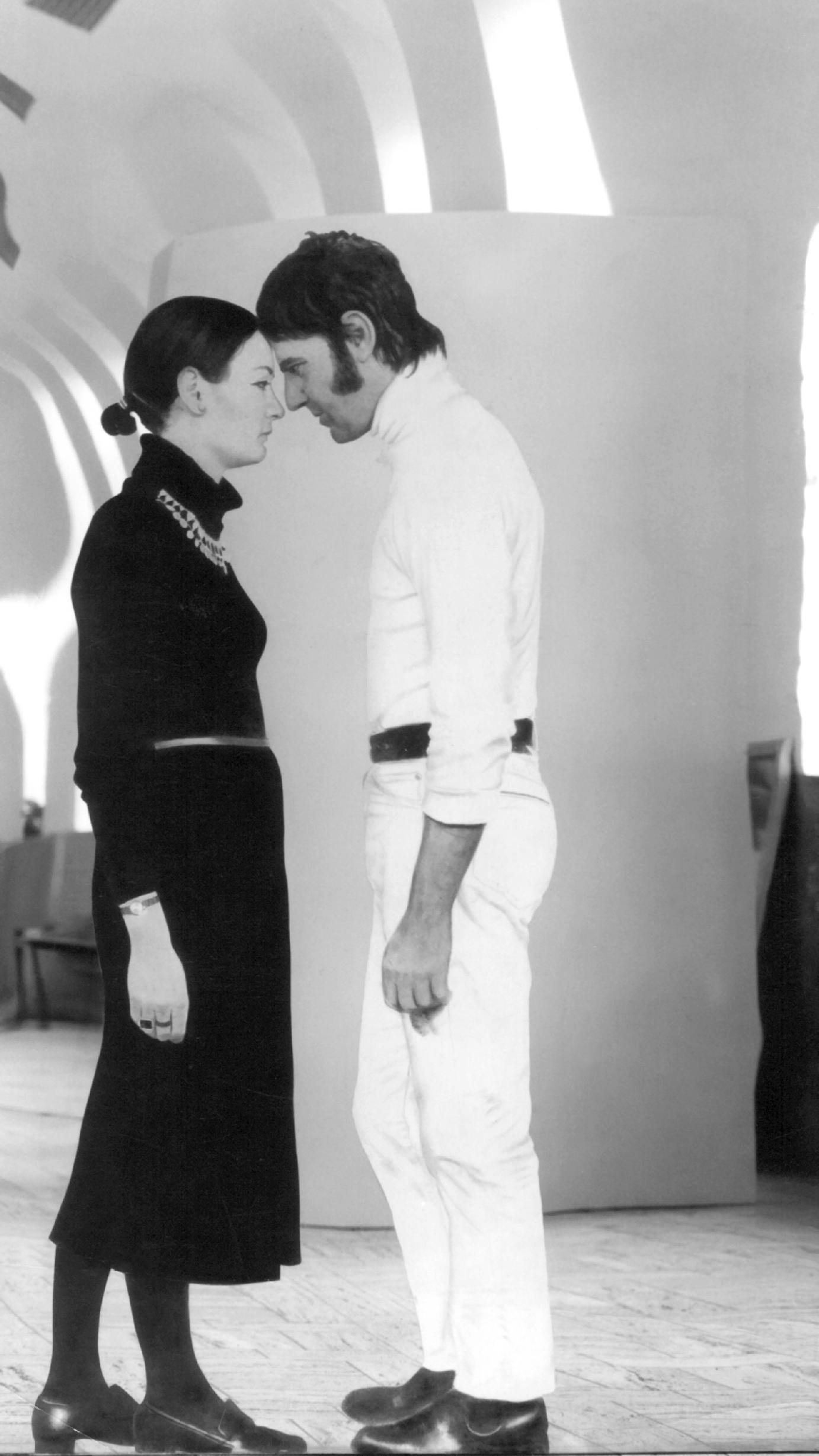 Michelangelo Pistoletto, Lei e Lui (Maria e Michelangelo), 1968. Painted tissue paper on polished stainless steel, 230 x 120 cm. Courtesy Archivio Pistoletto