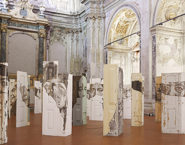 L’utilizzo della porta, come struttura e superficie stessa delle proprie opere, è ricorrente nel lavoro dell’artista portoghese, il quale riesce a creare così un rapporto stretto tra l’ambiente urbano e la sua sensibilità artistica. Dismesse, trasformate attraverso la caratteristica tecnica di intaglio a bassorilievo, queste porte hanno così raggiunto un nuovo significato, sfidando lo spettatore ad andare oltre l’osservazione e ad iniziare un processo di comprensione.