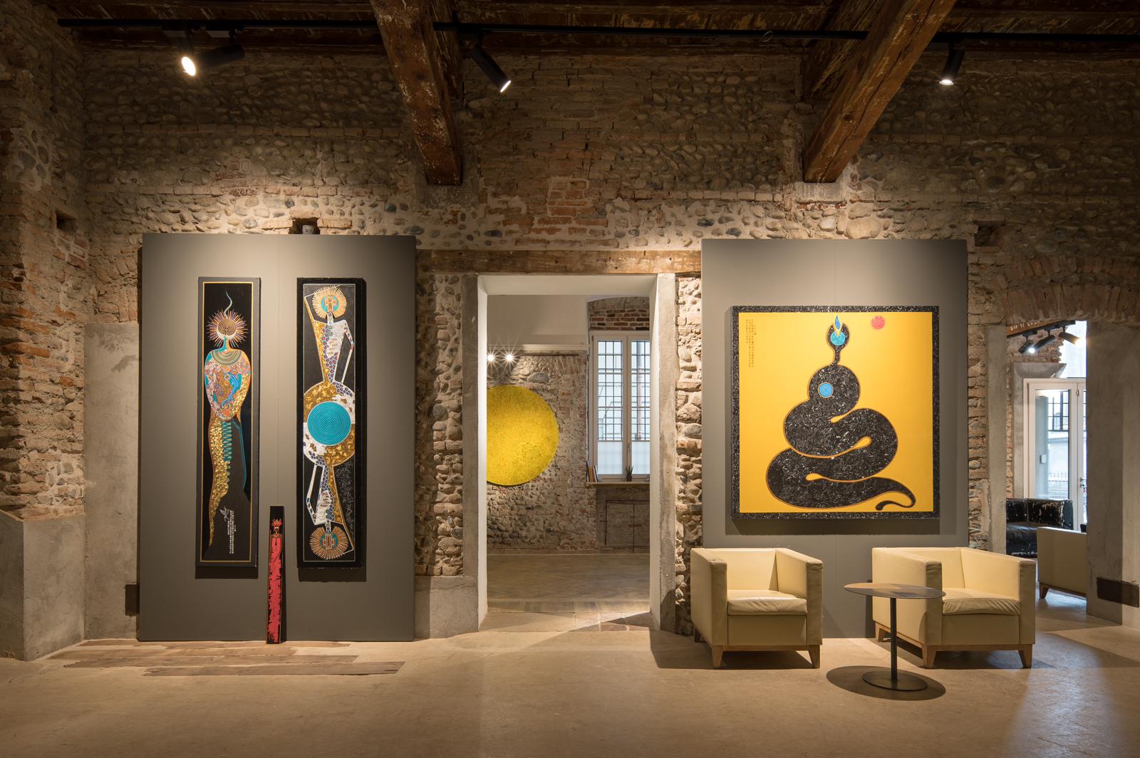Forme che richiamano all’attenzione la natura, il cosmo, gli animali, gli elementi, la geometria in uno spazio senza tempo dove si possono gustare paesaggi onirici, rimandi ad altre culture, divinità tribali, doppi speculari, un puzzle tutt’oggi incomprensibile all’artista stesso.