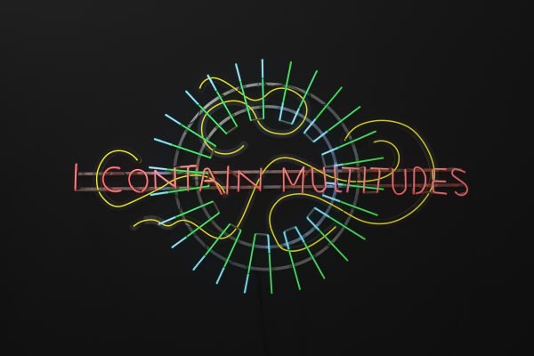 Marinella Senatore, I Contain Multitudes, 2022, Glass tubes with mercury-free gas mixture (greeNeon), LED flex, and cast methacrylate mounted on an anodised aluminium structure, 110 x 176 cm.