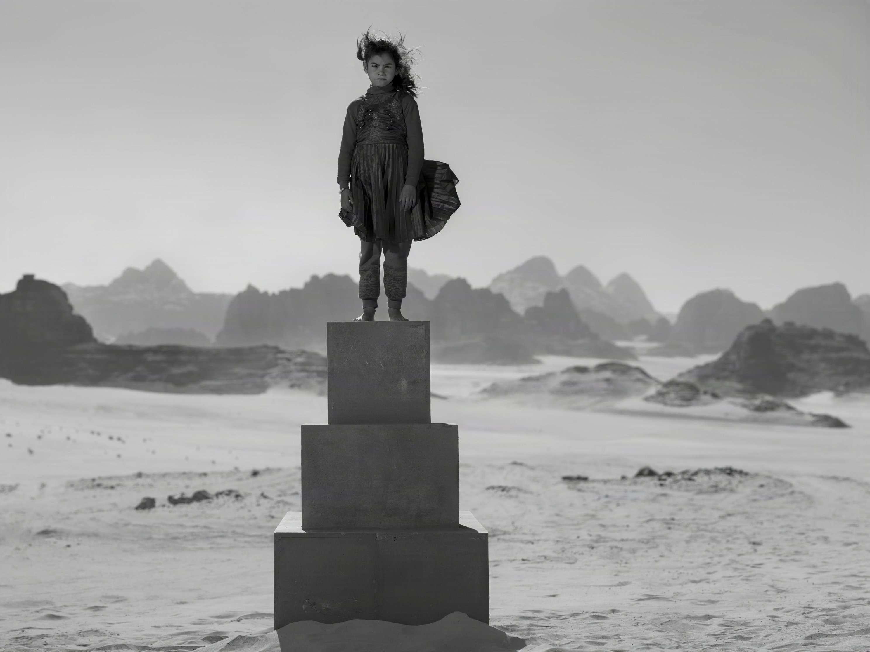 - Nick Brandt, Laila in piedi, Giordania, 2024, Stampa con pigmenti d’archivio, 71 x 94 cm, ed. 8. Courtesy: Galerija Fotografija