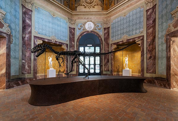 Nell’anno in cui ricorre il duecentesimo anniversario della prima descrizione scientifica di un fossile di dinosauro (Megalosaurus descritto da William Buckland nel 1824), il Sistema dei Musei e Orto Botanico dell’Università degli Studi di Modena e Reggio Emilia (MuseOmoRE), ripresenta al pubblico il suo scheletro di Allosaurus fragilis con una posa coerente con le attuali conoscenze. Lo scheletro dell’Allosauro dialogherà con le opere dell’artista Dario Ghibaudo che, a partire dal 1990, ha creato una grande opera multiforme e multi-situata: il Museo di Storia Innaturale. Egli ha reso questa impresa artistico-darwiniana il principale veicolo della sua produzione artistica, recuperando l’attitudine scientifica tipica della storia naturale ai fini della creazione di un personale museo immaginario con cui riflettere ironicamente sull’universo delle classificazioni della specie, della genetica e sulle mutazioni tra animale, umano e vegetale.