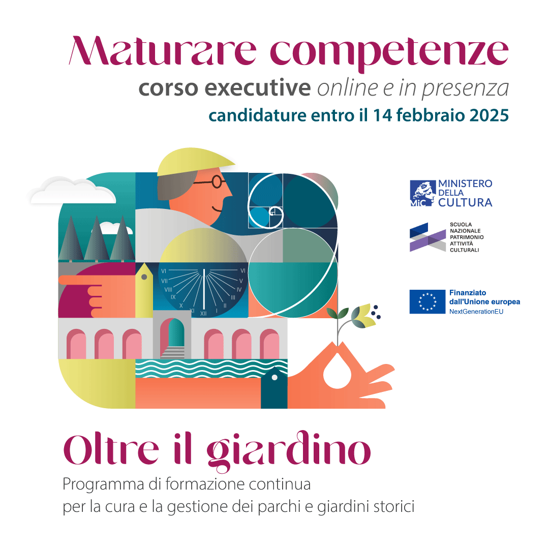Oltre il giardino è un’iniziativa del Ministero della Cultura, curata e realizzata dalla Scuola nazionale del patrimonio e delle attività culturali, con il supporto di APGI Associazione Parchi e Giardini d’Italia.